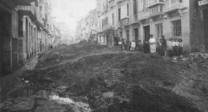Estado de la calle Carretería de Málaga tras las inundaciones de Septiembre de 1907. Fuente: Archivo Municipal de Málaga